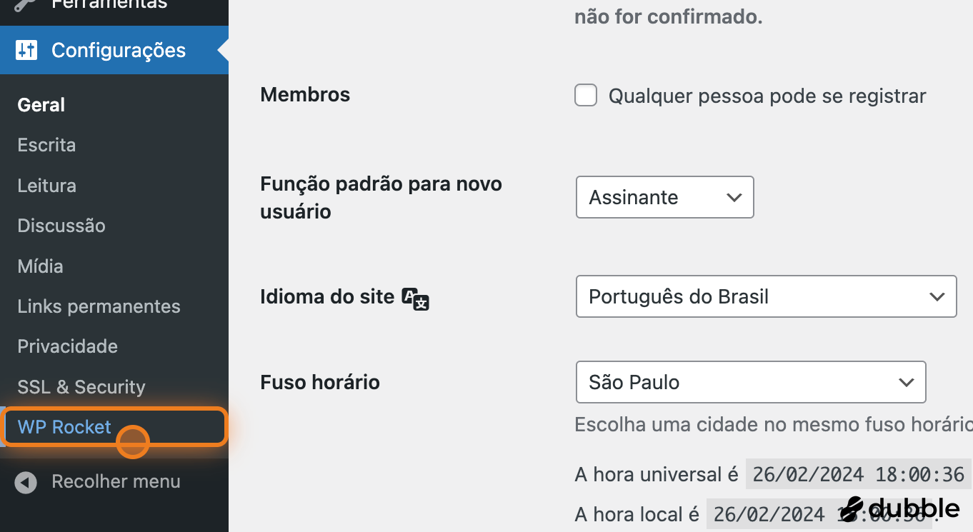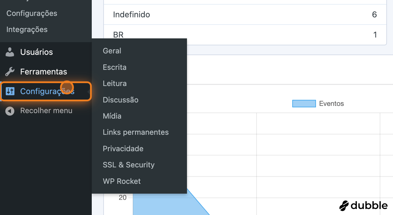 1. No seu painel WordPress, aperte no menu "Configurações"
