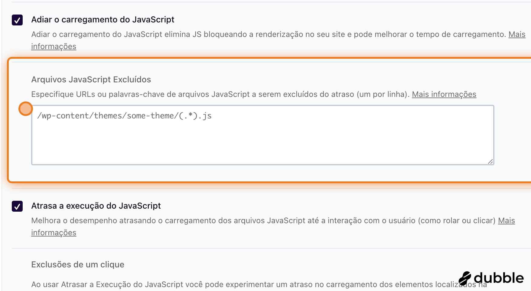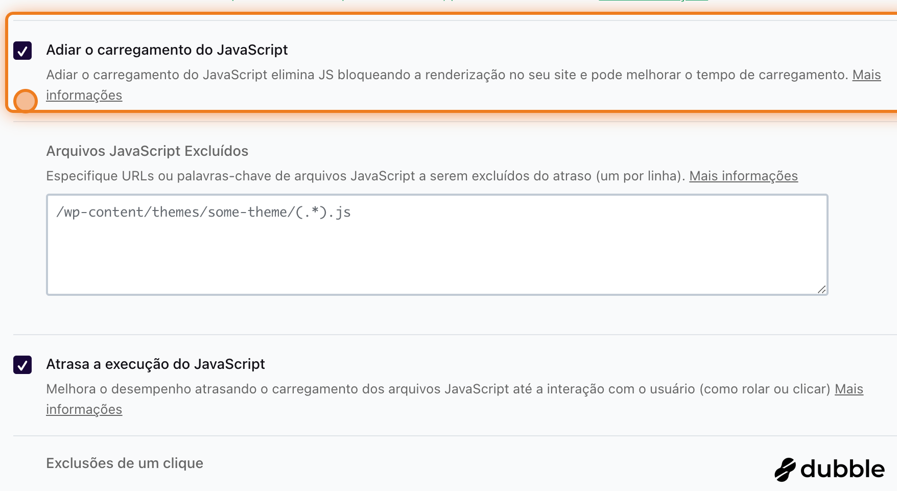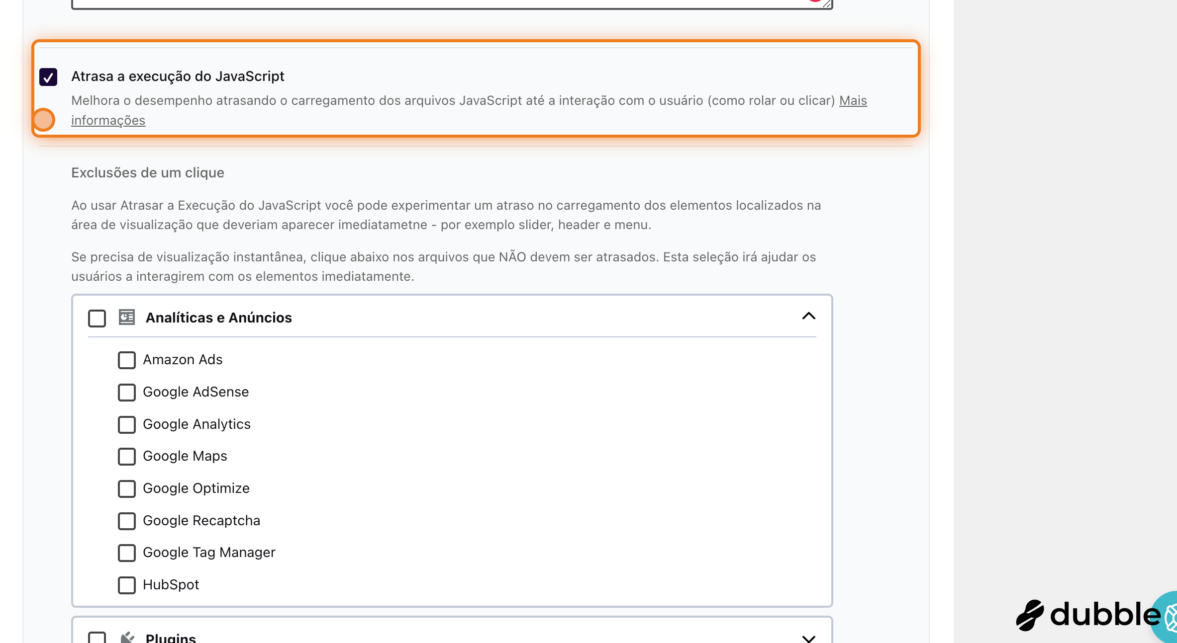 6. Se a opção de "Adiar o carregamento do JavaScript" estiver ativada